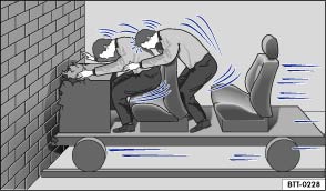 Fig. 52 Passengers of a vehicle heading for a brick wall. They are not wearing seat belts